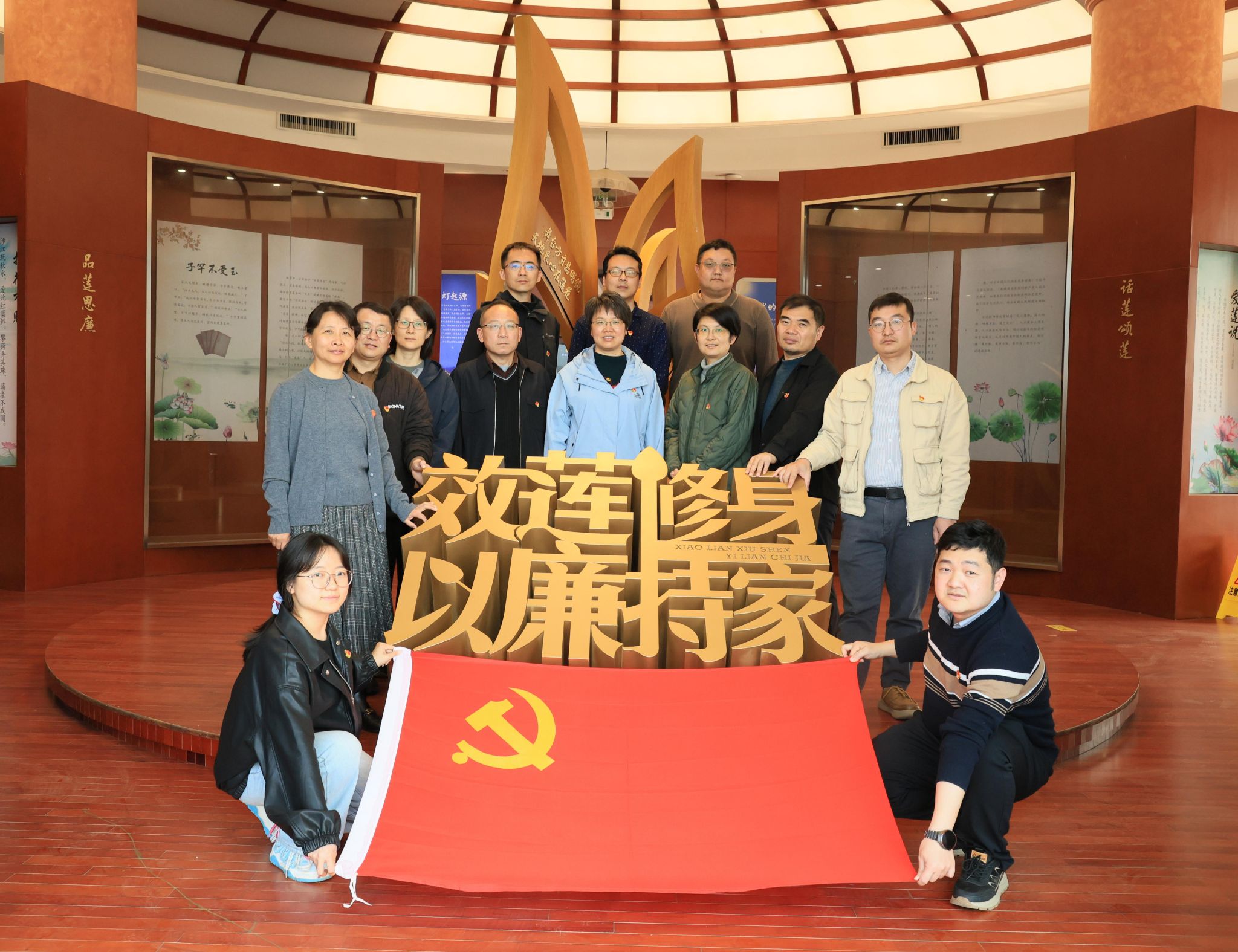 在王荷波纪念馆,师生党员认真参观了馆内陈列的珍贵史料和历史文物,深入了解王荷波同志作为中国工人运动杰出先驱的革命生涯与崇高品格,感悟老一辈无产阶级革命家坚定的理想信念和清正廉洁的政治本色。参观结束后,全体党员面向党旗庄严宣誓,重温入党誓词,表达不忘初心、牢记使命的坚定决心。在西埂莲乡莲文化馆,师生通过图文展示、实物陈列和多媒体互动,系统了解莲文化的历史渊源与时代内涵,深刻领会“莲”与“廉”的内在关联,感悟莲花洁净高雅的品格与共产党人清正廉洁的政治本色的相通之处。